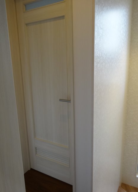 洋室入口ドアの白さと、貼り分けクロスのストライプがマッチしています