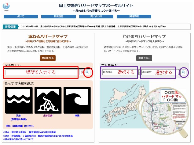 ・赤枠入力で国土交通省のハザードマップ