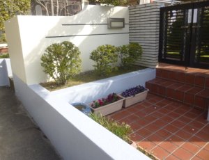 まず門扉横に配置されている駐車場の出入口の段差に手摺を設置しました。 |