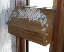この木箱は弊社大工による手作りで、ふたのトールペイントはお施主様(若奥様)の作品です